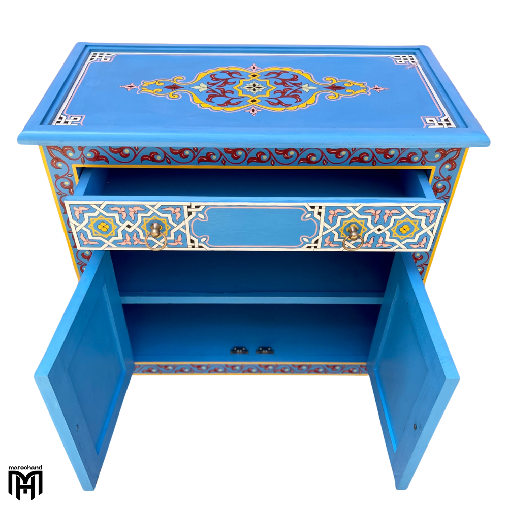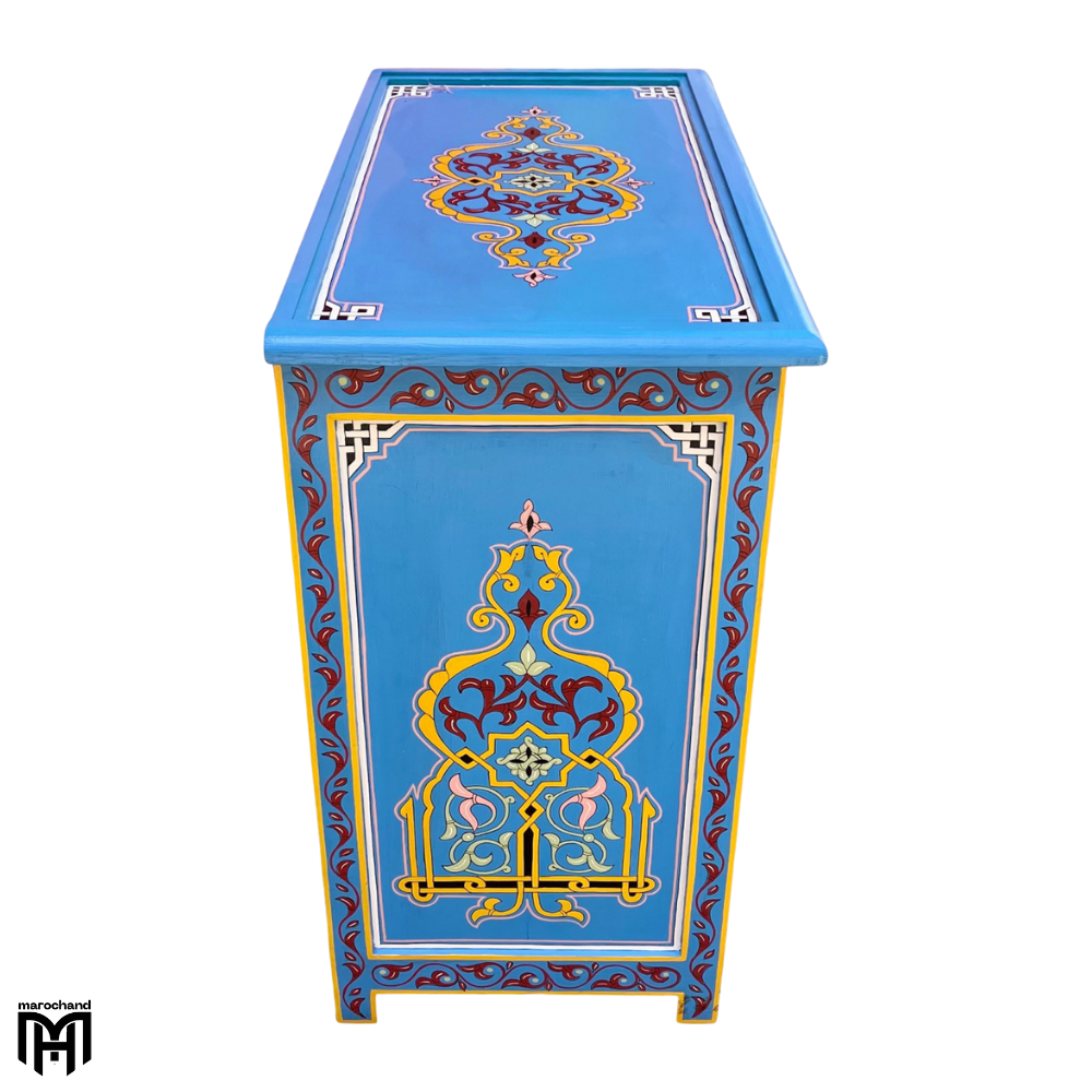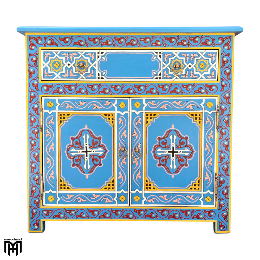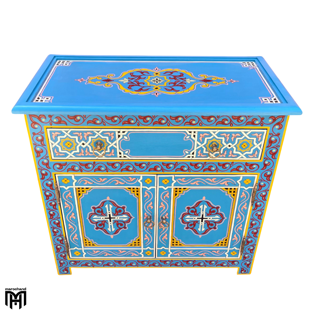 Discover the exceptional ZRIYEK collection, featuring a Moroccan handmade chest of drawers with a truly unique style that sets it apart from conventional furniture. This extraordinary piece serves as both a functional chest of drawers for bedroom needs and an artistic statement, showcasing the pinnacle of traditional craftsmanship and distinctive design.