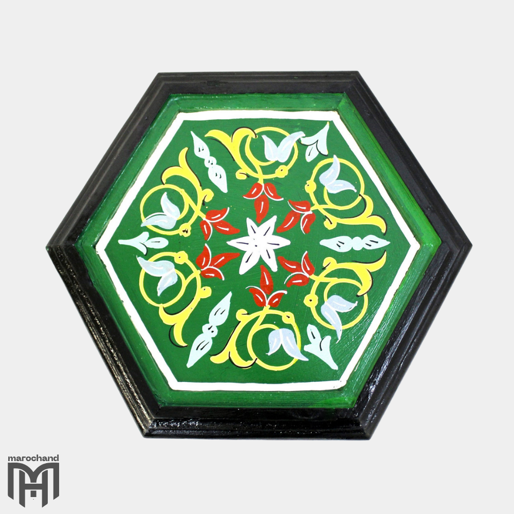 Moroccan Hexagonal Green Hand Painted Side Table – Boho Accent Table