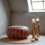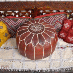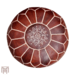 Immerse yourself in the elegance of traditional Moroccan craftsmanship with our Round Brown Leather Pouf. Expertly handcrafted by skilled artisans, this piece features a striking white-stitched sunburst design radiating from a hand-embossed central medallion—a beautiful blend of function and artistry. Crafted from premium genuine leather, this 21-inch pouf embodies the essence of Moroccan heritage and style.