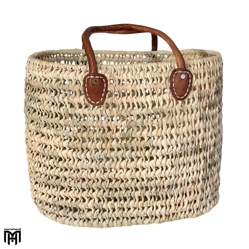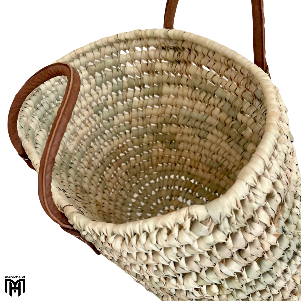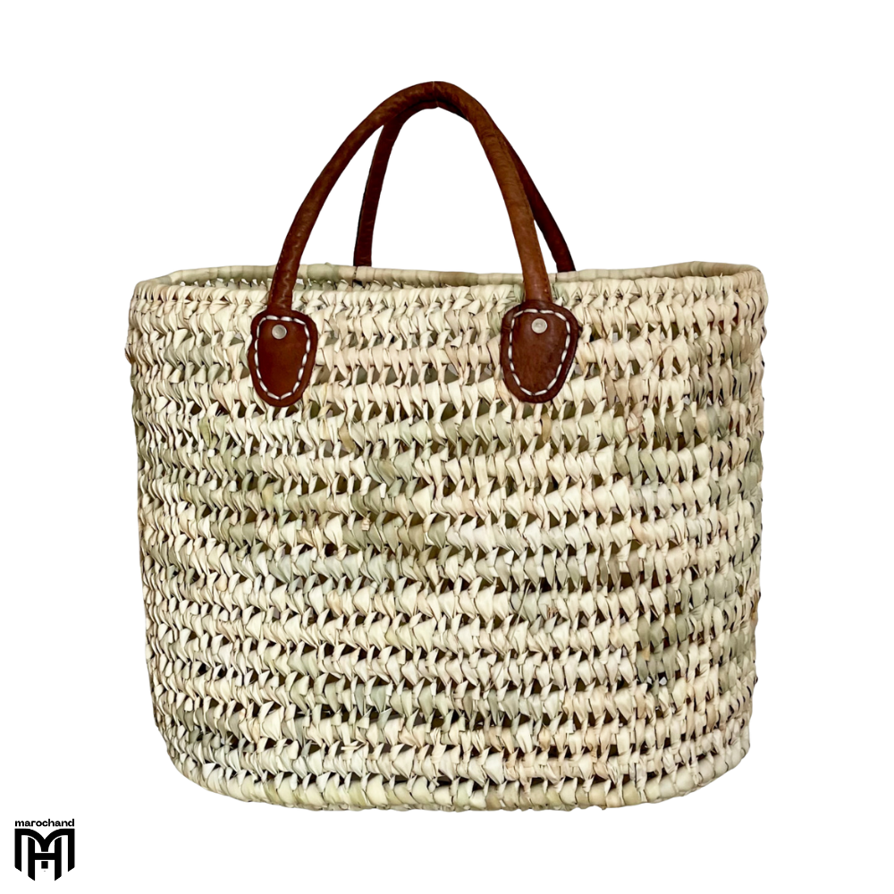LARA Moroccan Palm Leaf Tote Bag with Leather Handle – Unisex Vintage Boho Bag