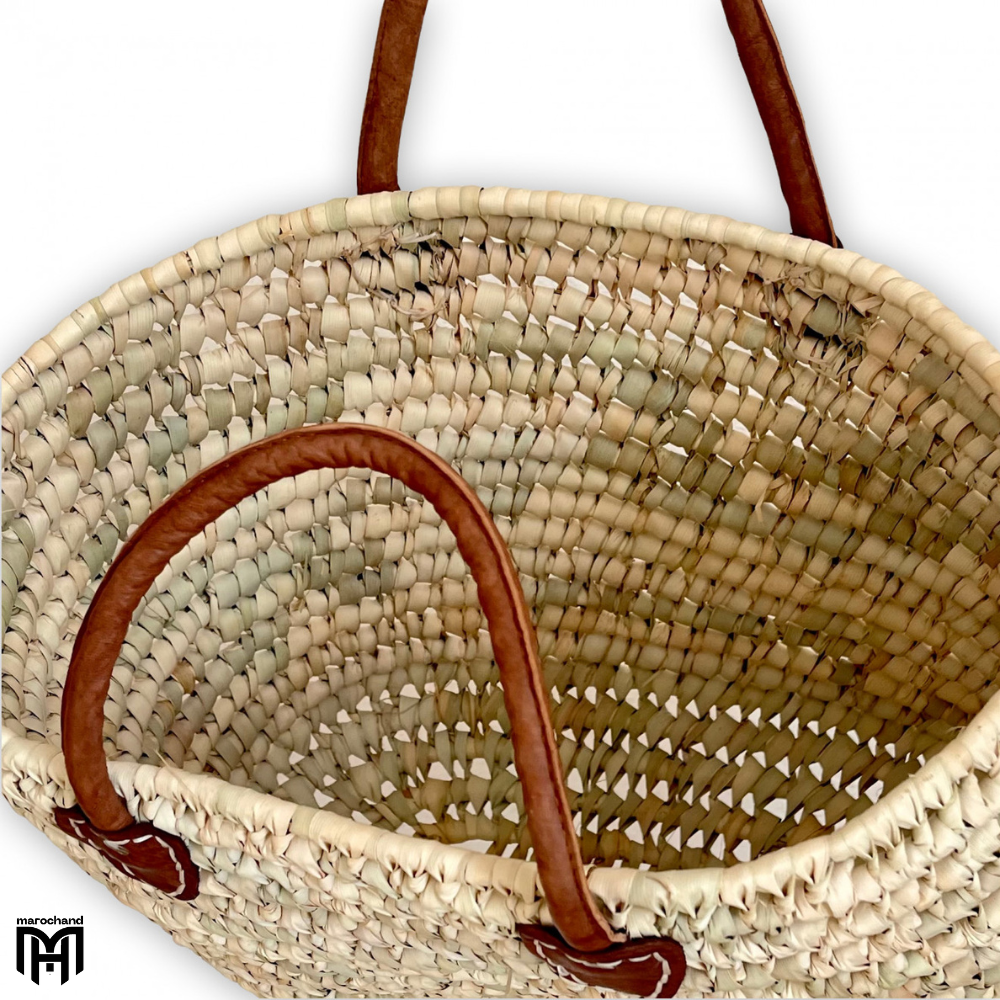 Meet the LARA collection – an authentic Moroccan palm leaf handbag featuring a genuine leather handle that blends traditional craftsmanship with modern utility. This versatile tote bag serves as both a practical beach bag and elegant shoulder bag, making it the perfect choice among bags for women and men seeking artisanal style.