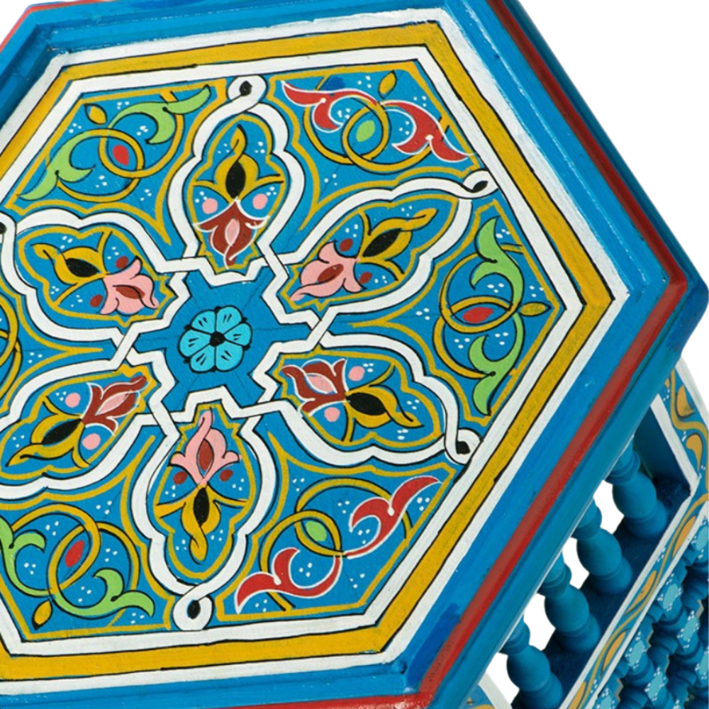 Moroccan Blue Hexagonal Natural Wood Table | Coffee & Side Table