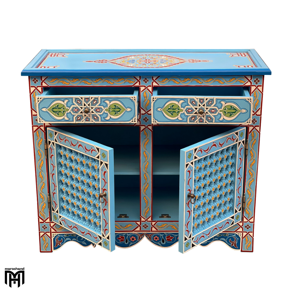 Introducing the DAYAN collection, a stunning Moroccan colorful chest of drawers featuring exquisite hand-painted designs that bring artistic flair to any space. This versatile chest of drawers serves as both a functional bedroom chest of drawers and a striking statement piece, making it an essential addition to your home decor.