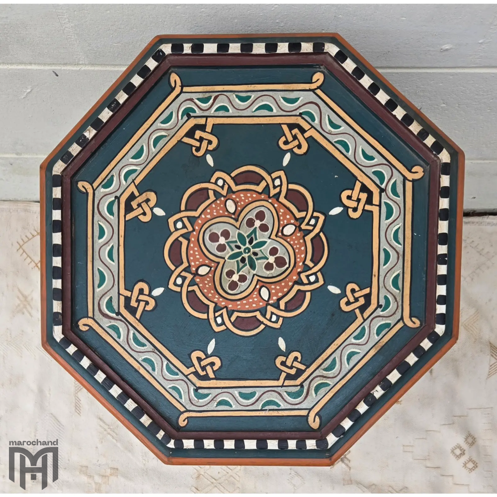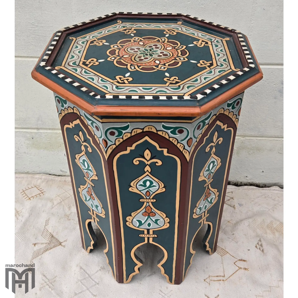 Moroccan Hand Painted Side Table – Cerulean Zouak Hexagon Wood Table