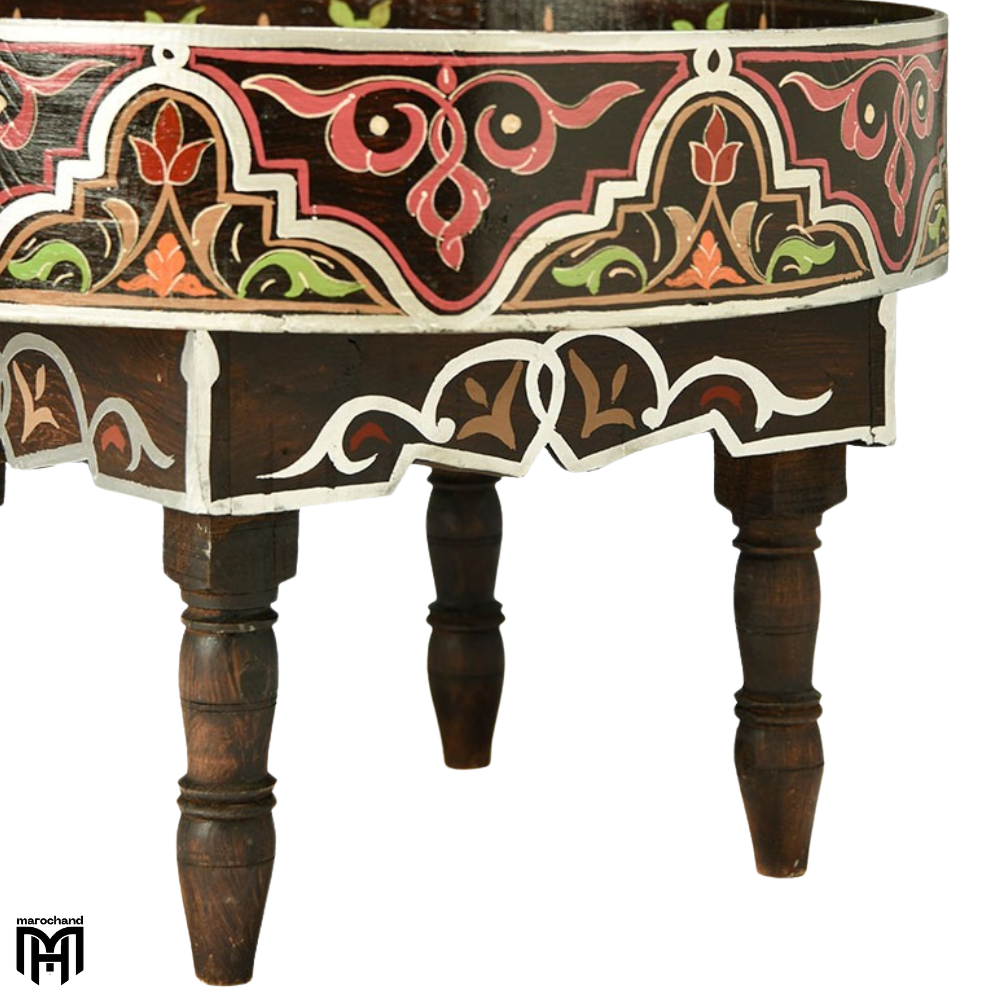 Place it in your entryway as a charming entryway table to catch keys and mail, or use it as a distinctive alternative to a round coffee table or round dining table. The elevated edges provide a secure spot for table lamps and decorative accents, while the handmade craftsmanship ensures lasting quality. This table brings Moroccan-inspired utility and organic beauty to any setting.