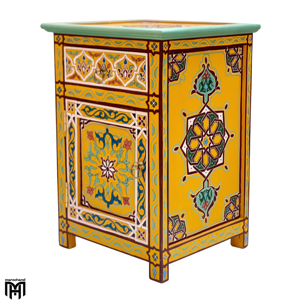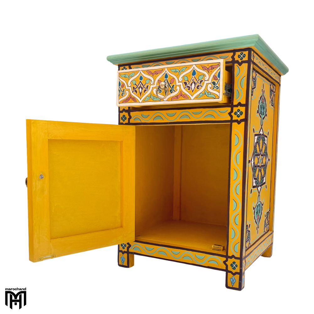Elevate your bedroom with the authentic charm of our Moroccan Bedside Table. Crafted from beautiful, solid Nature Wood, this piece brings organic warmth to any space. Its cleverly designed, small bedside table profile is ideal as a skinny bedside table for tight spaces, fitting perfectly next to your bed as a functional nightstand bedside table.