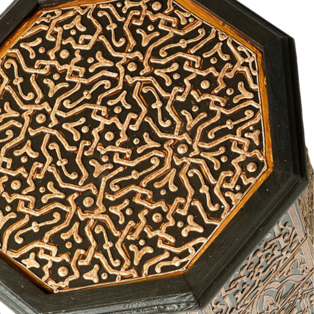 The octagonal shape provides a perfect canvas for the henna artwork, making this table an exceptional side table for displaying and admiring the detailed patterns. Use it as a decorative table decor piece that sparks conversation, or as a practical surface for table lamps that highlight the beautiful designs. The sealed finish protects the artwork, allowing it to function as a unique outdoor side table for covered patio spaces.