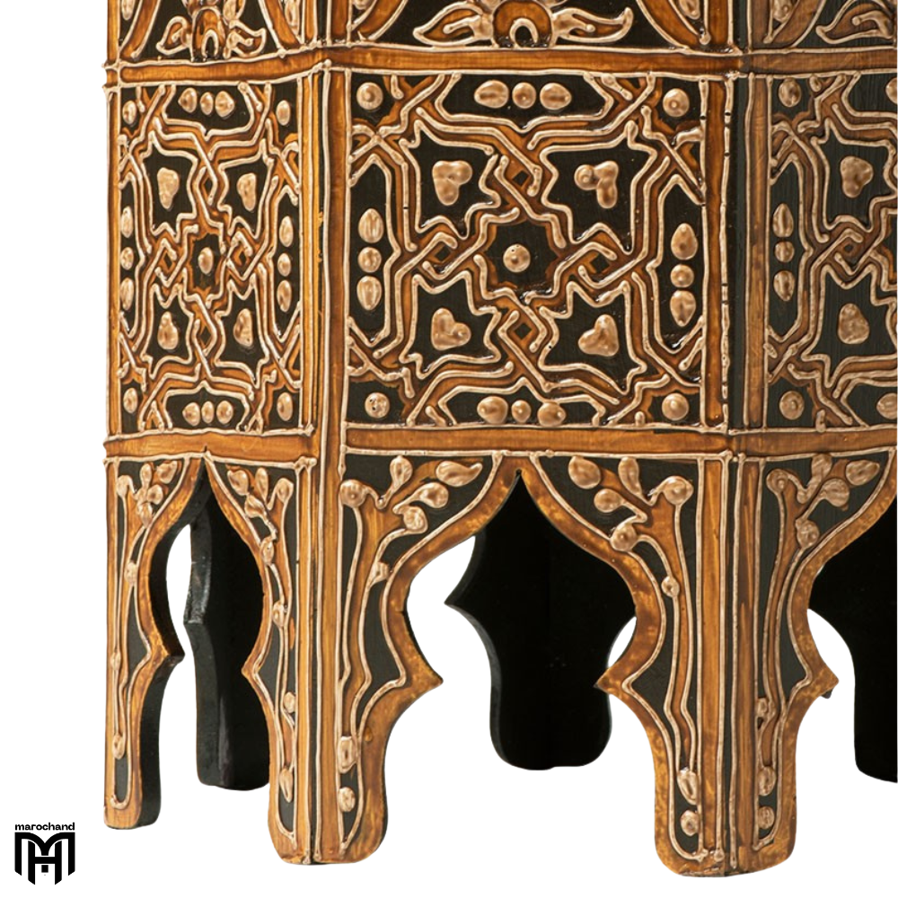 This versatile piece serves beautifully as both a table and side table, adapting to your needs as a small side table for intimate spaces or an artistic wood dining table for special occasions. The henna drawings add cultural elegance as an entryway table that welcomes guests, while the unique design offers a distinctive alternative to conventional round coffee table or round dining table options. Whether used as a bedside table for daily inspiration, a tea table for ceremonial gatherings, or a dining room table accent, this hand-painted treasure brings authentic Moroccan artistry and spiritual symbolism into your living space.