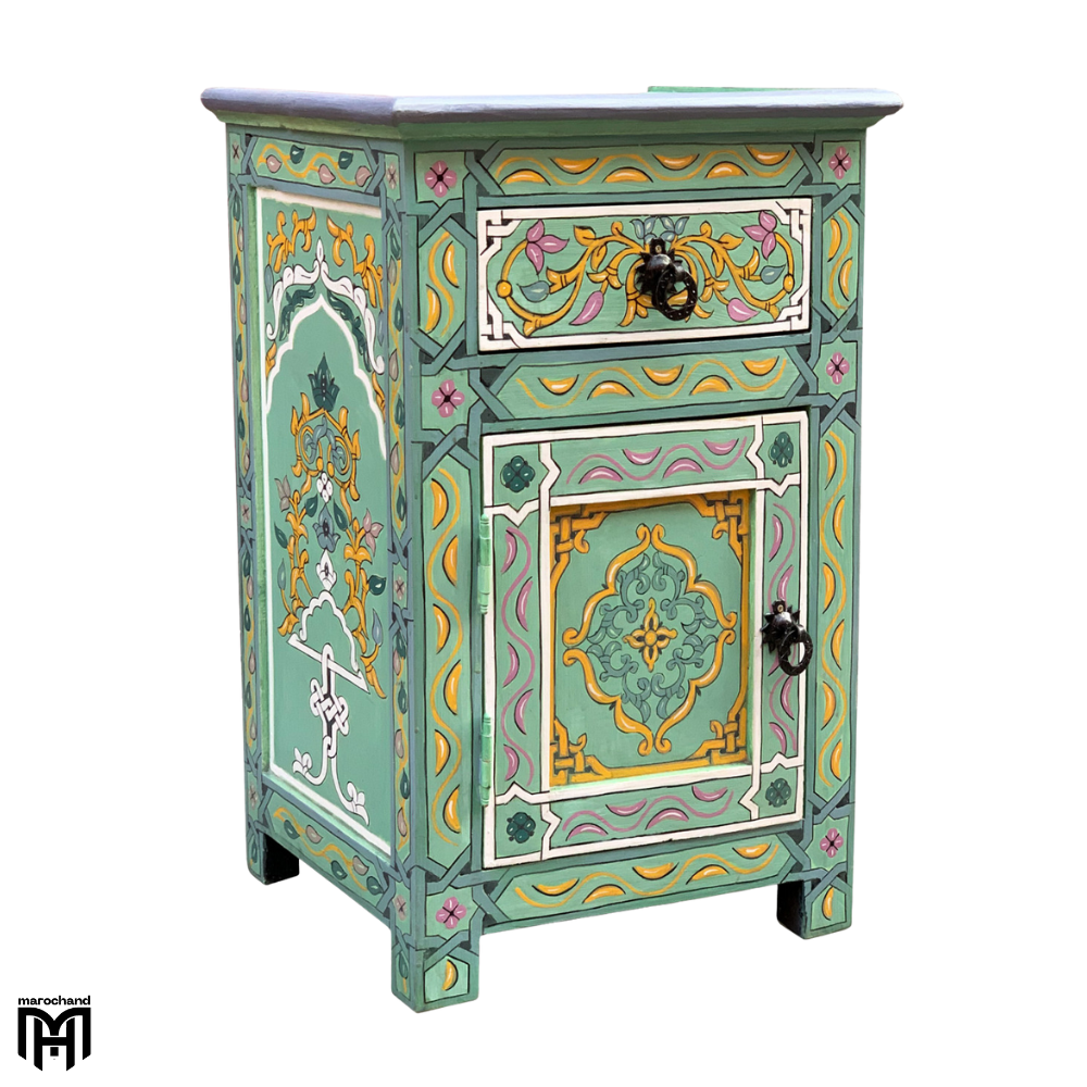 Moroccan Oriental Green Bedside Table – Handmade Nature Wood Nightstand