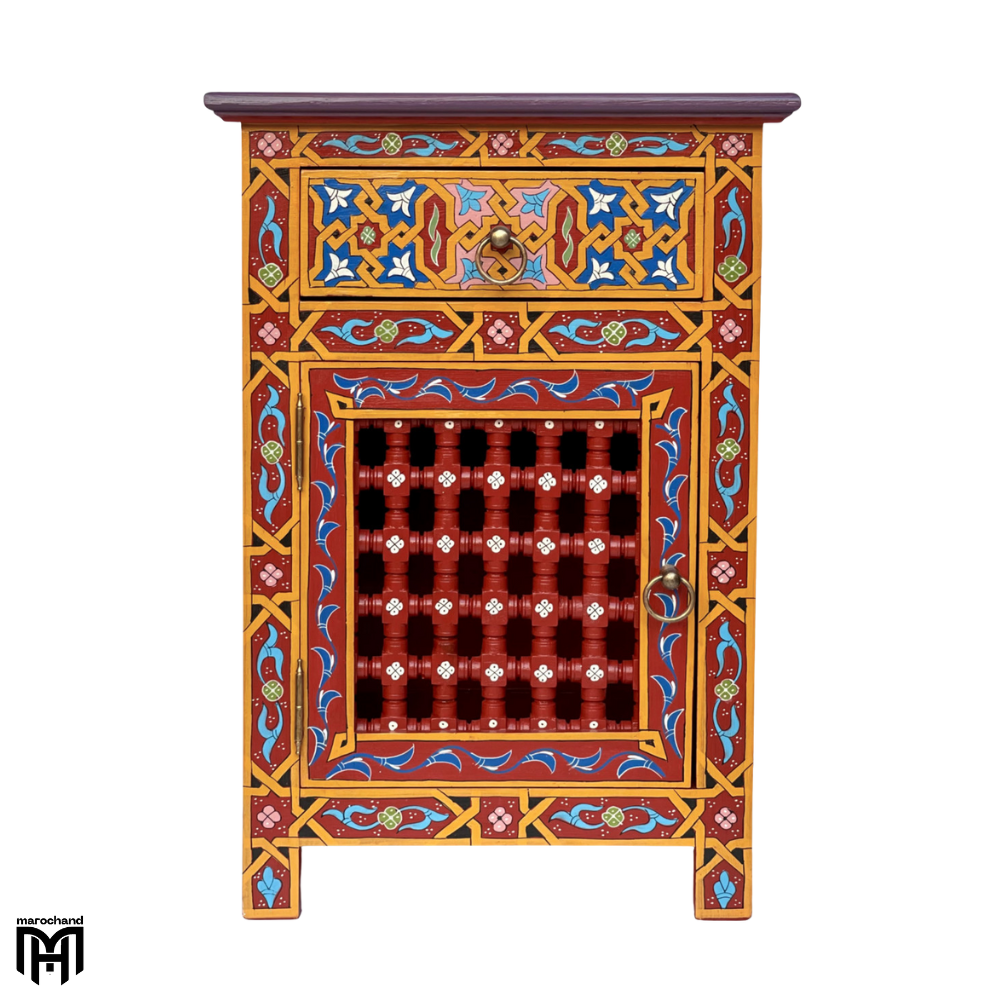 Moroccan Oriental Red & Yellow Bedside Table – Nature Wood Nightstand