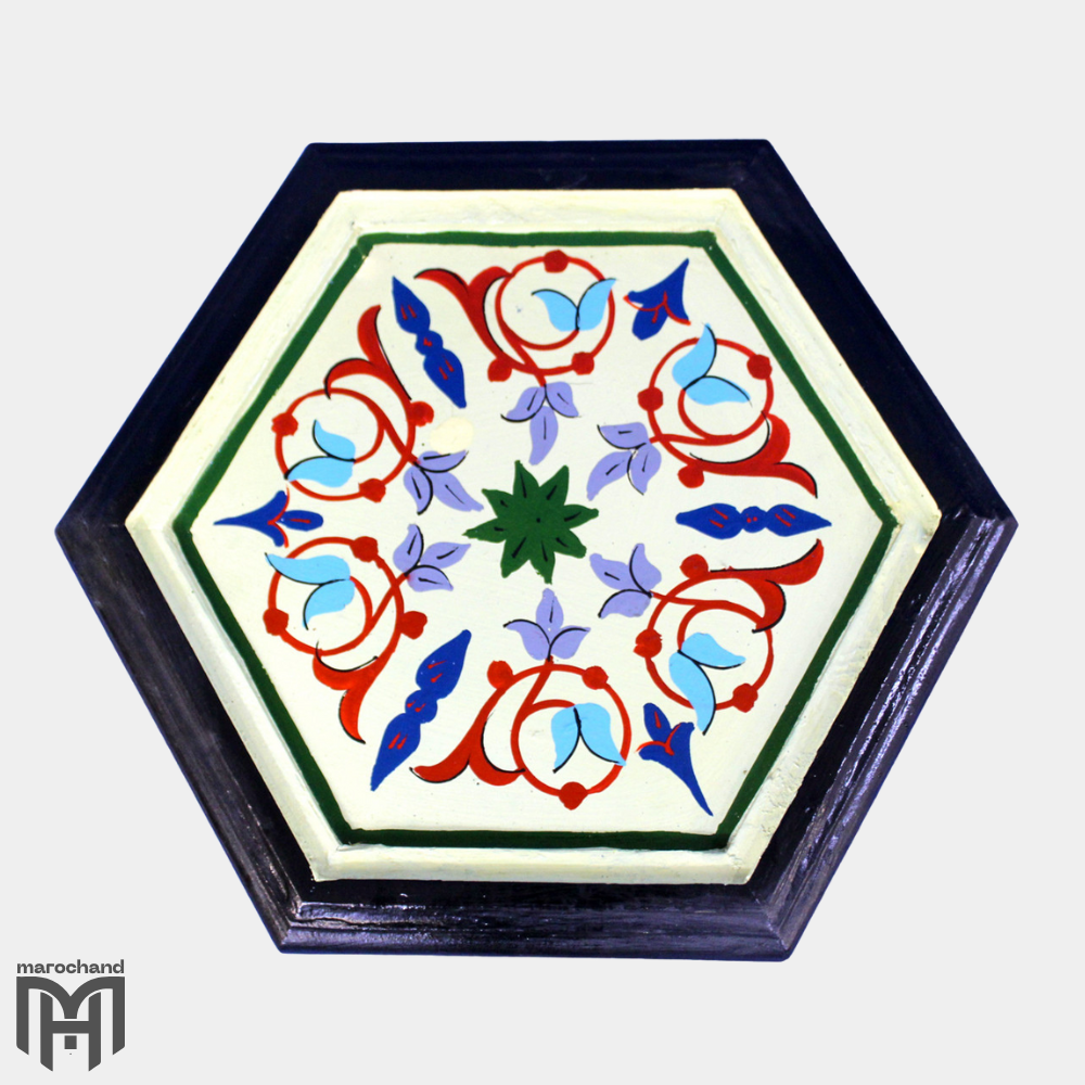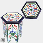 Moroccan Floral Hexagonal Hand Painted Side Table – Boho Accent Table