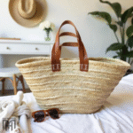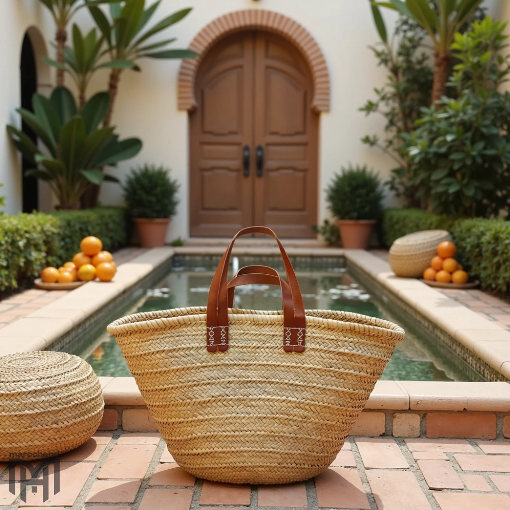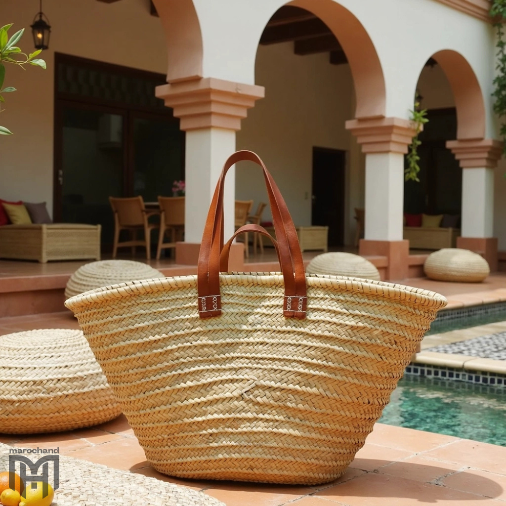 Moroccan Straw Tote Bag with Dual Leather Handles – Hand women Beach & Market Basket