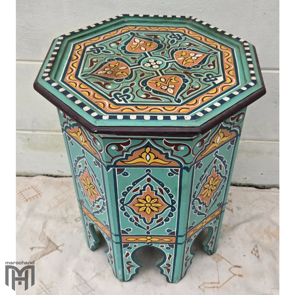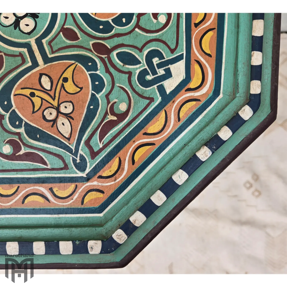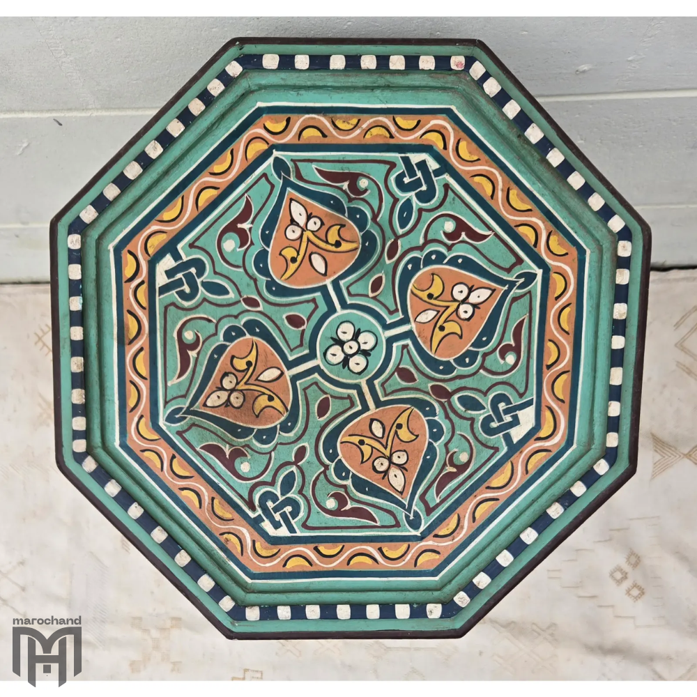 Bring a breath of fresh air into your space with this stunning hand-painted Moroccan wooden side table in a captivating turquoise Zouak finish. This octagonal table is more than just furniture—it’s a handcrafted piece of art inspired by traditional Moroccan motifs.
