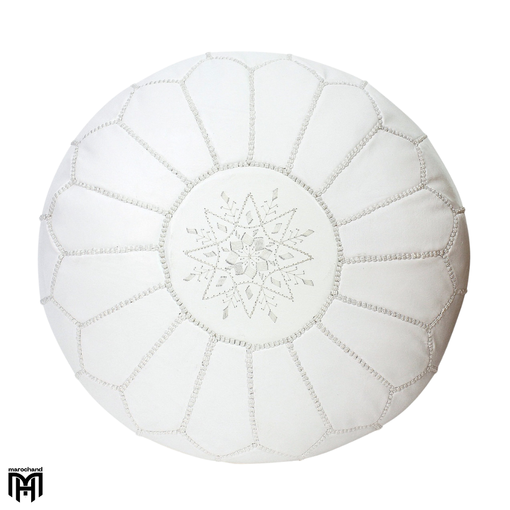 Moroccan RONDA Arabian Seat Cushion | White Leather Poufs