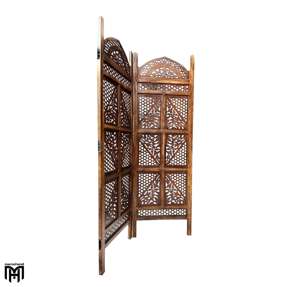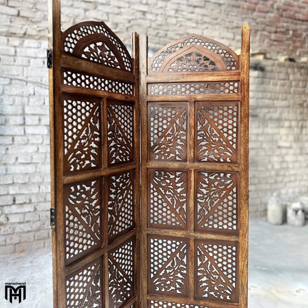 Moroccan Mid Century Wooden Room Divider | Handmade Folding Partition Screen