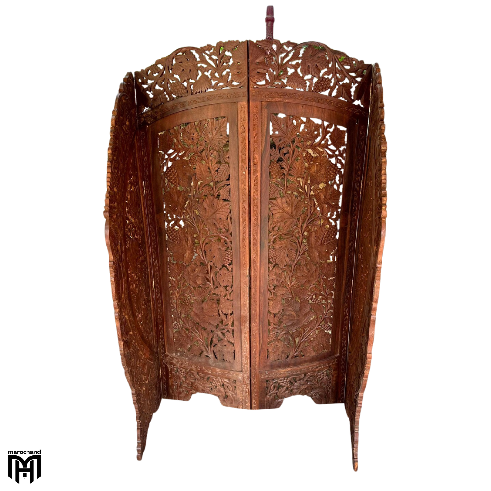 Moroccan Spanish Flora Design Teakwood Screen | Standing Folding Room Divider Panel
