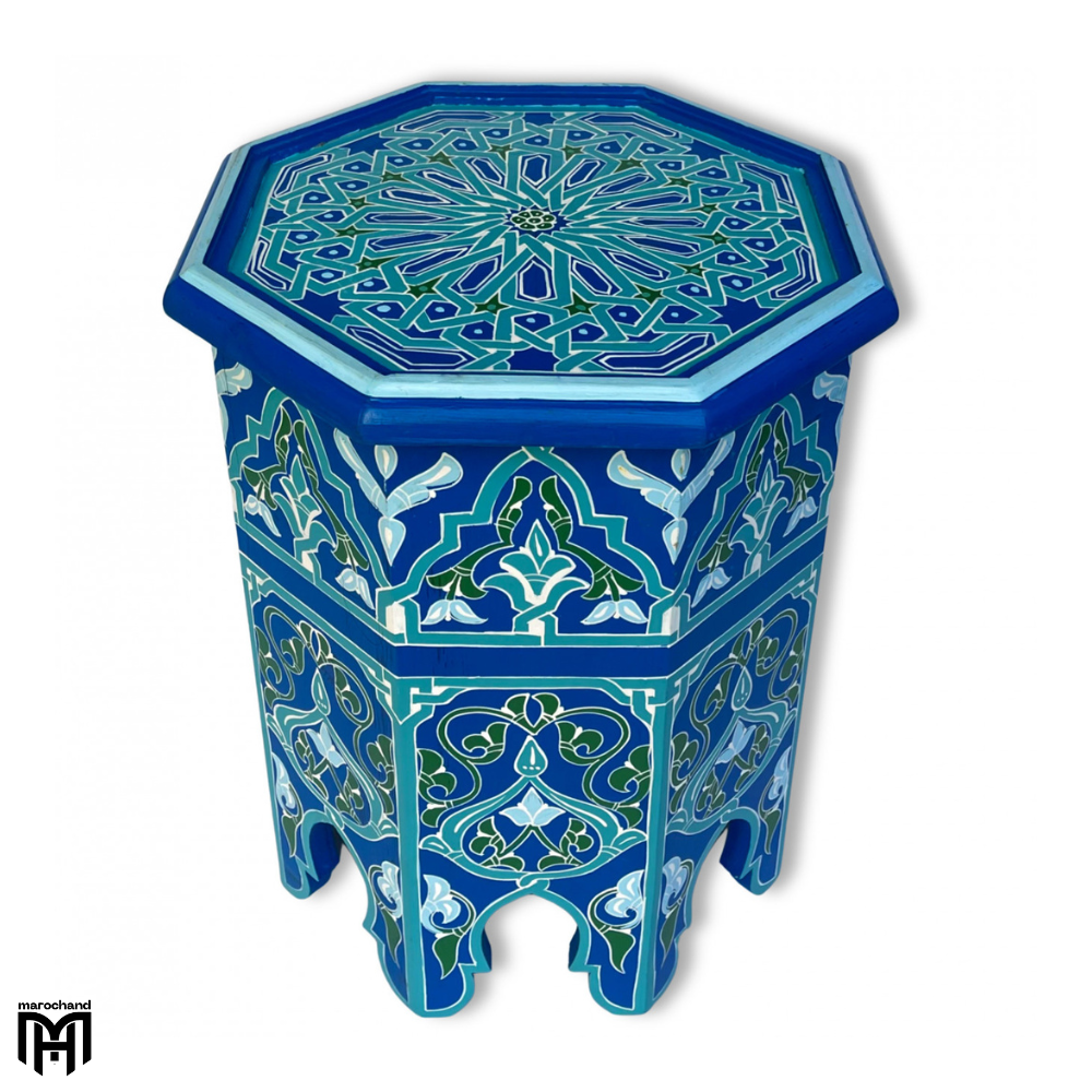 oroccan Blue Hand-Painted Side Table | Artisan Wood Coffee & Tea Table