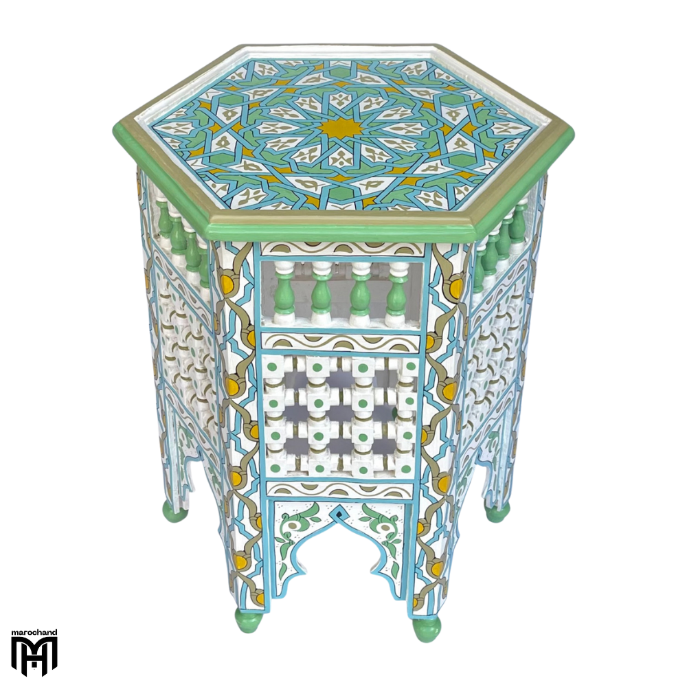 Introducing the Moroccan Hand-Painted MINA Tea Table, an exquisite piece from the MINA collection that embodies the rich cultural heritage of Moroccan craftsmanship. This beautifully crafted tea table features intricate hand-painted designs in traditional patterns, making it not just functional furniture but a true work of art. Perfect as a wood coffee table that adds elegance to your living space, or as a versatile side table that brings Moroccan charm to any room.