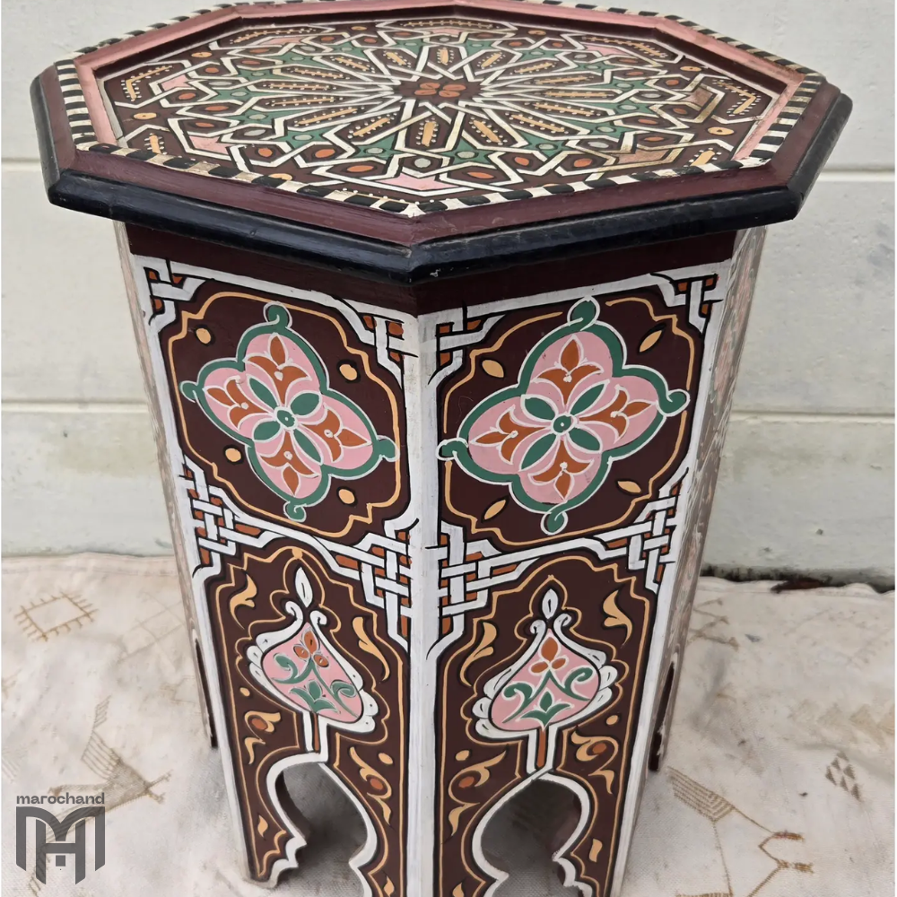 Use this star-inspired table as a welcoming entryway table that greets guests with its cosmic beauty, or as an enchanting alternative to conventional round coffee table designs. The blue hand-painted surface provides a dreamy backdrop for table decor and creates a perfect foundation for table lamps that enhance the celestial atmosphere. Whether displayed as a dining room table accent or utilized as a bedside table that brings starry dreams to your bedroom, the NEJIM collection piece represents the celestial wonder of Moroccan design, bringing cosmic beauty and artistic excellence to your home through its blue hand-painted details and masterful craftsmanship.