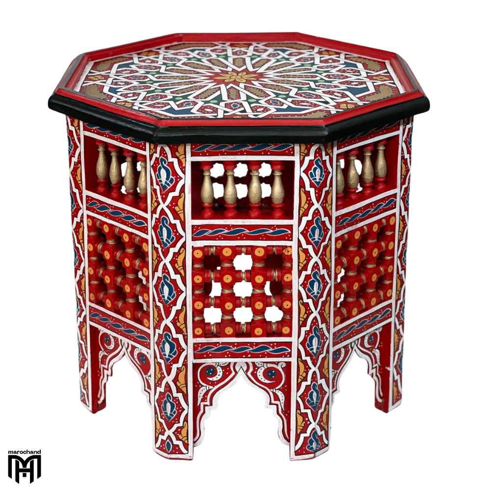 Meet the Moroccan Octagonal HALIMA Table, a beautifully balanced piece from the HALIMA collection designed specifically for both coffee and tea service. This expertly crafted table features the traditional octagonal shape that symbolizes harmony and balance in Moroccan culture, making it equally perfect for your morning coffee ritual or afternoon tea ceremony. The HALIMA table serves wonderfully as a wood coffee table that creates a welcoming gathering spot in your living area, or as a dedicated tea table for traditional Moroccan tea service.