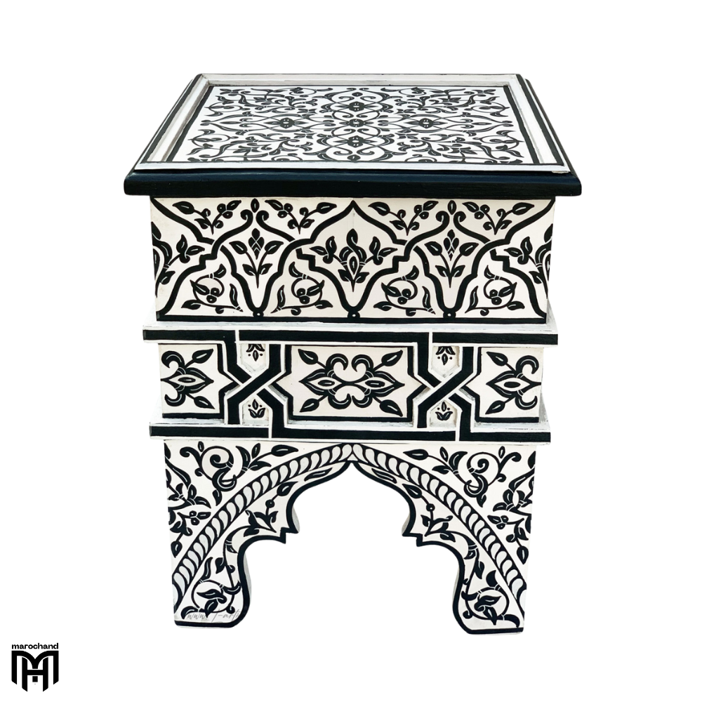 Moroccan Oriental BAHTA Side Table | Black & White Hand-Painted Wood Table
