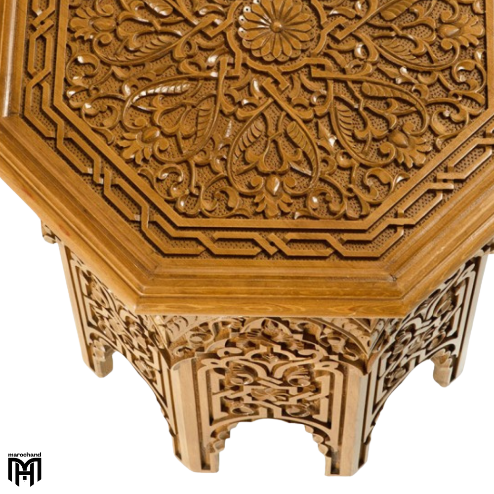 Moroccan Carved Octagonal Table | Natural Wood Coffee & Side Table